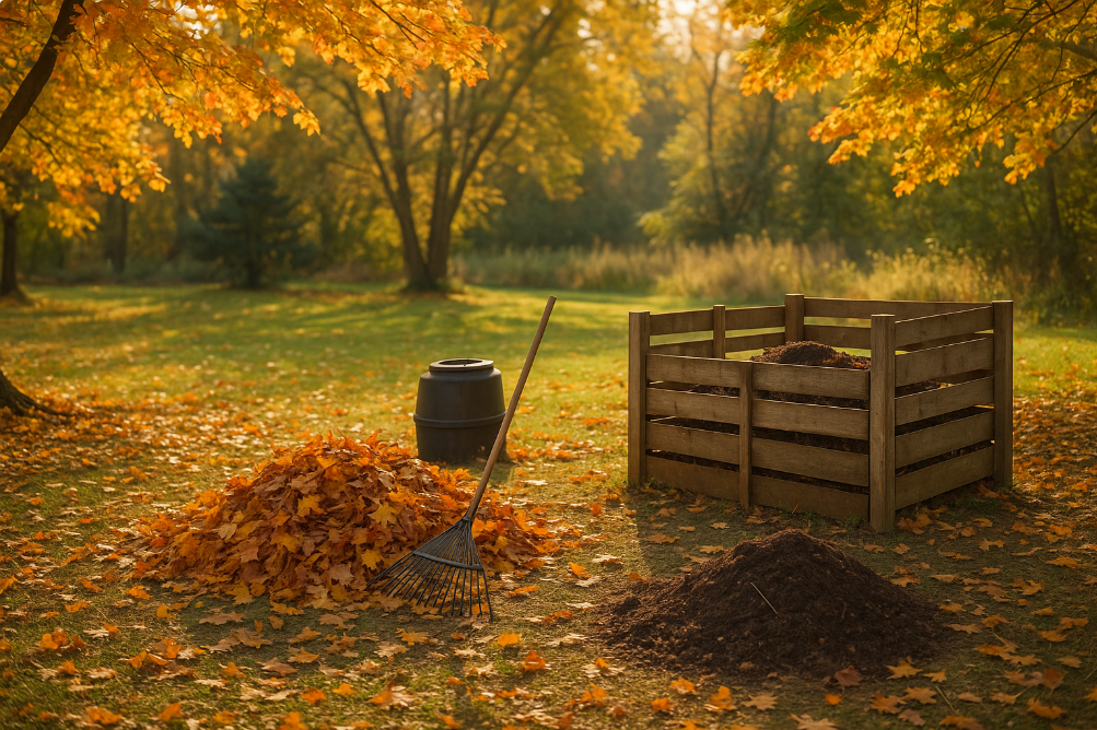 Composting fall leaves and garden trimmings turns waste into rich organic matter. Layer “browns” (leaves, twigs) and “greens” (grass clippings, fruit and veggie scraps), keeping it slightly damp. A sprinkle of soil or compost starter helps it break down faster — and Kleen Green can even help keep odors at bay.